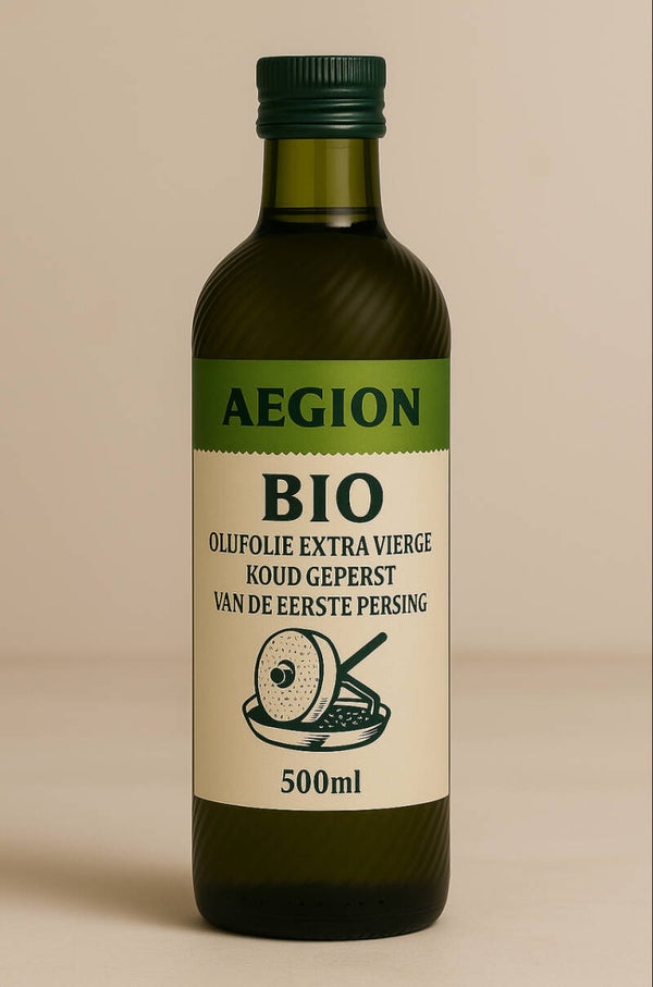 AEGION Olijfolie Extra Vierge wordt met zorg geproduceerd uit biologische olijven afkomstig van familieboomgaarden in Kreta en Kalamata Griekenland. Wat onze olie uniek maakt, is de traditionele manier van persen: